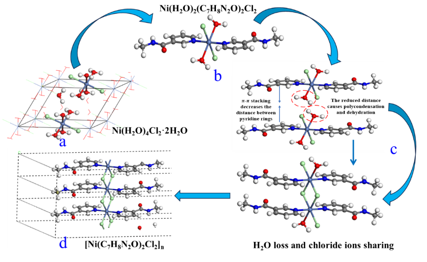 研究团队深入研究镍、钴离子在氯化体系中的配位机理,并结合分子设计原理,在实验室成功研发新型氮杂环酰胺萃取剂N-2-乙基己基吡啶-3-甲酰胺。对镍和钴进行选择性萃取,对镁、钙、铝、铬等大量共存杂质离子进行高效分离,含大量杂质的母液循环浸出并达到平衡,从而避免了尾液蒸发耗能高、废盐产量大、污染严重等问题。通过相似结构单晶衍射证实,氯化镍分子结合两分子吡啶杂环上的氮配位,形成稳定的八面体结构,大分子酰胺官能团提供了配位所需要的电子云密度以及合适的空间结构。