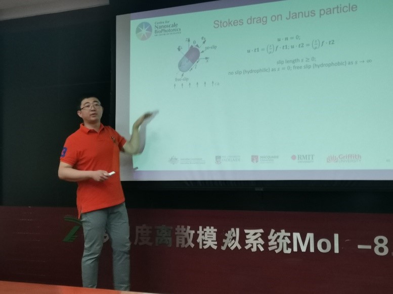 报告会上,孙强博士与参会人员在超声驻波小油滴的受力、椭球金粒子表面等离子共振、套心球所受的光镊力、柱状粒子对脉冲光波的散射、半自由滑移、半无滑移Janus粒子在斯托克斯流里的受力等方面进行了热烈的讨论,详细回答了相关问题,并提出了双方未来可能合作的多个领域。此次报告会不仅有助于了解液体里双势层静电作用的前沿动态,而且对青年科研人员在算法方面也具有积极的指导作用。