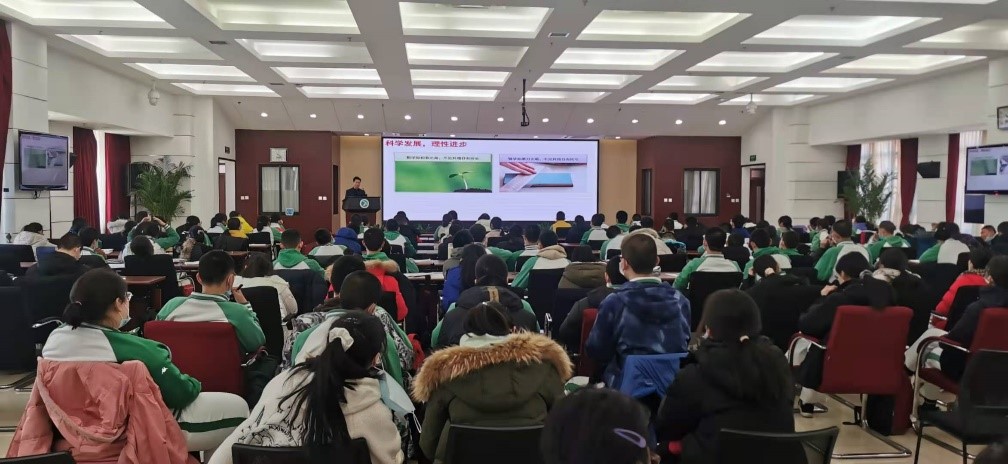 王体壮副研究员首先为师生们带来了《小颗粒,大健康——新冠病毒检测和追踪》《科学魅力 文明阶梯》两个主题报告,从新冠病毒的溯源、分析抽丝剥茧、深入浅出地讲述了科学研究对人类发展、文明延续和个人提升的积极作用,从思维模式、科学态度等方面号召同学们做复杂社会的“体志智趣”分子。
